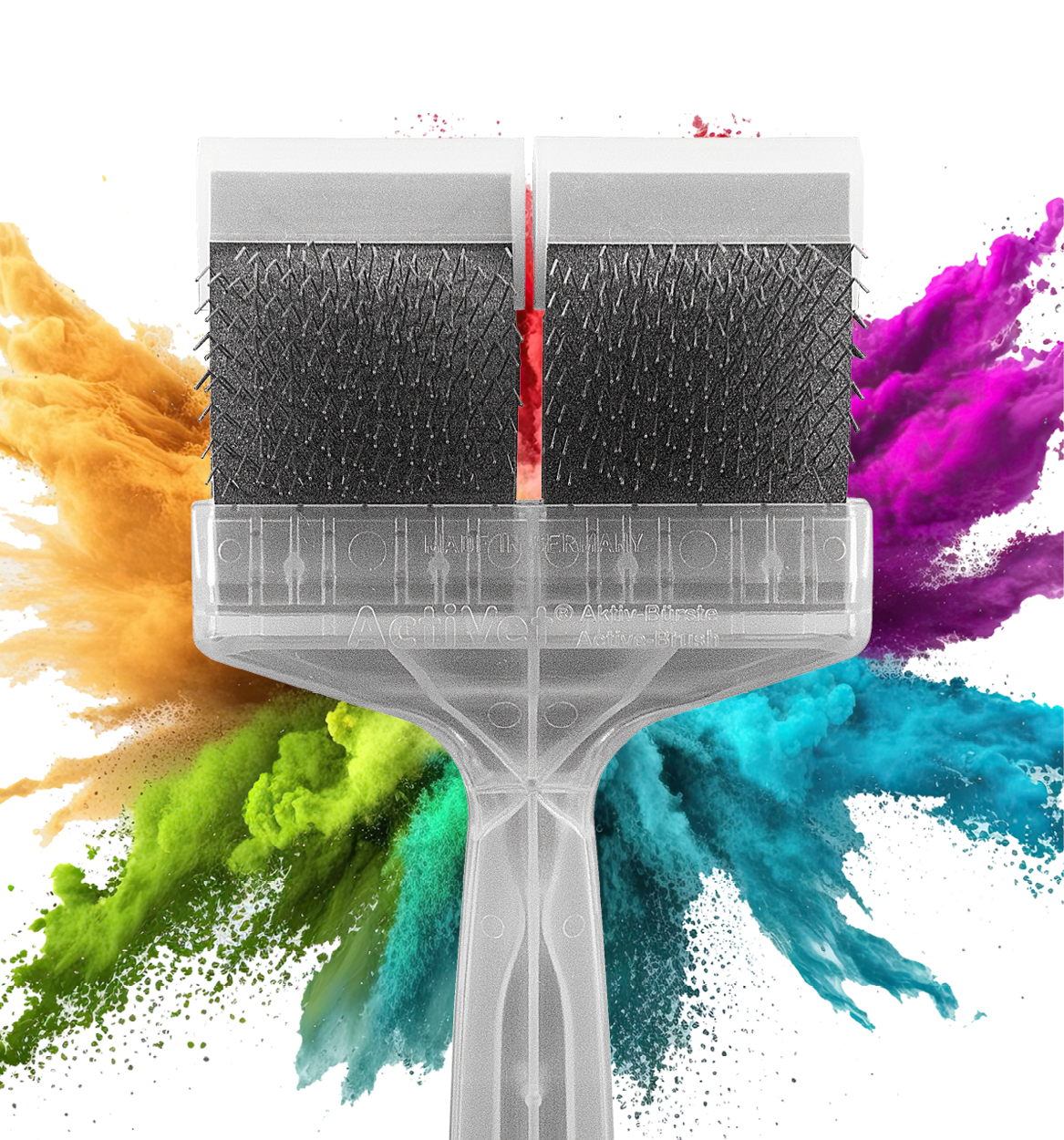 Diese effizienten Bürsten erleichtern Hundefreunden die Pflege und sorgen für filzfreies Fell sowie glänzendes Finish ohne "ziepen". Die "ActiVet Pro"-Modelle für Züchter und Hunde-Salons, zeichnen sich durch einen flexiblen Kopf, einfache Handhabung, Zeitersparnis beim Bürsten, eine außerordentliche Qualität und dadurch bedingte Langlebigkeit aus. Mit einem neuen transparenten Designkonzept finden sich gewohnte Farben in den "ActiVet"-Bürsten wieder und machen so kenntlich, für welches Fell sich das jeweilige Modell besonders eignet. Um auch der Größe des Hundes oder der Katze gerecht zu werden, gibt es alle "ActiVets" in zwei Größen, wahlweise mit 4,5 cm oder die Mega-Variante mit 9 cm breitem Bürstenkopf.