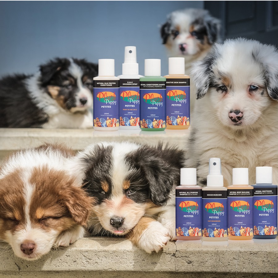 Ak chcete dosiahnuť maximálne dobrý výsledok, mali by ste počas rôznych štádií presrsťovania používať rôzne šampóny. A aj rôzne farby si vyžadujú rôznu starostlivosť. Ale ak máte australáka práve v plnej srsti, použite pre super lesk Plush Puppy All Purpose Shampoo. Zriedený v pomere 5:1 (5 dielov vody na 1 diel šampónu) je skvelý na všetky farby. Na grooming suchej, starej srsti použite Conditioning Shampoo with Evening Primrose v pomere 5:1. Ten pridá extra hydratáciu aj v období, keď srsť presychá a pred pĺznutím alebo po dlhých horúcich letných dňoch má tendencie sa lámať. V čase pĺznutia a keď srsť nie je dosť bohatá, kúpte v Body Building Shampoo. Zrieďte ho tiež v pomere 5:1, pričom sledujte, či potrebujete viac objemu a textúry alebo stačí toto riedenie. Pre všetky šampóny platí, že čím koncentrovanejší šampón použijete, tým bude účinok silnejší. Toto funguje skutočne výborne a pomôže dosiahnuť žiadaný výzor australáka v plnej srsti.