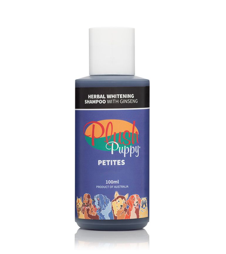 Plush Puppy® Herbal Whitening Shampoo je vyroben převážně z organických zdrojů s výtažky z ženšenu, bílkovinami a fialovým odstínem v bohatém složení, které skvěle bělí bílé barvy a zintenzivňuje tmavší barvy.