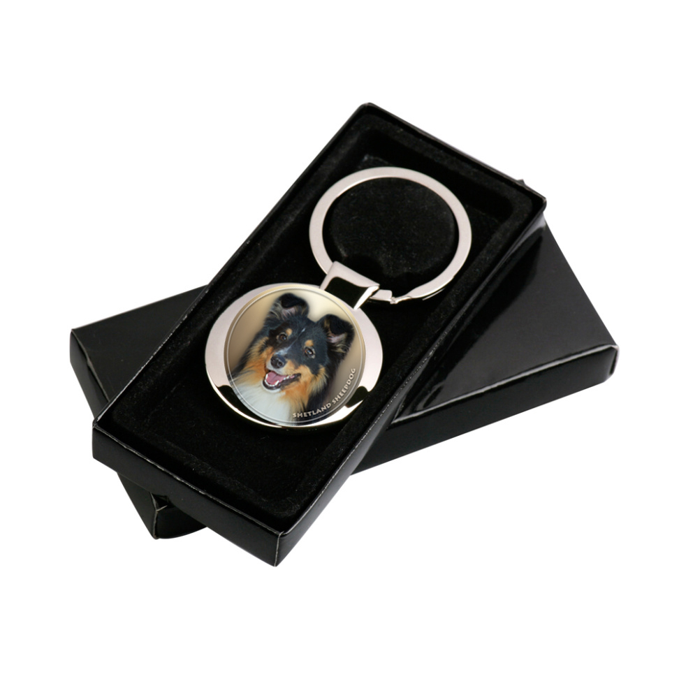 Originální kovová klíčenka s portrétem psa zalitým v pryskyřici ozdobí každý svazek klíčů. Luxusně zabalený v černé krabičce je ideálním dárkem pro každého milovníka psů.